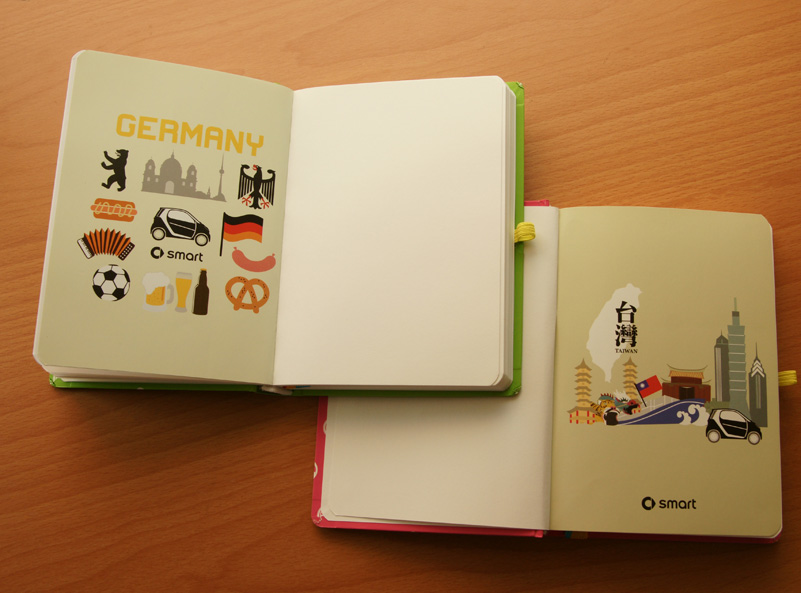 以經典車款遨遊世界為概念,呈現多樣的異國風情,搭配上封面鮮艷色系,突顯出筆記本的獨特面貌。