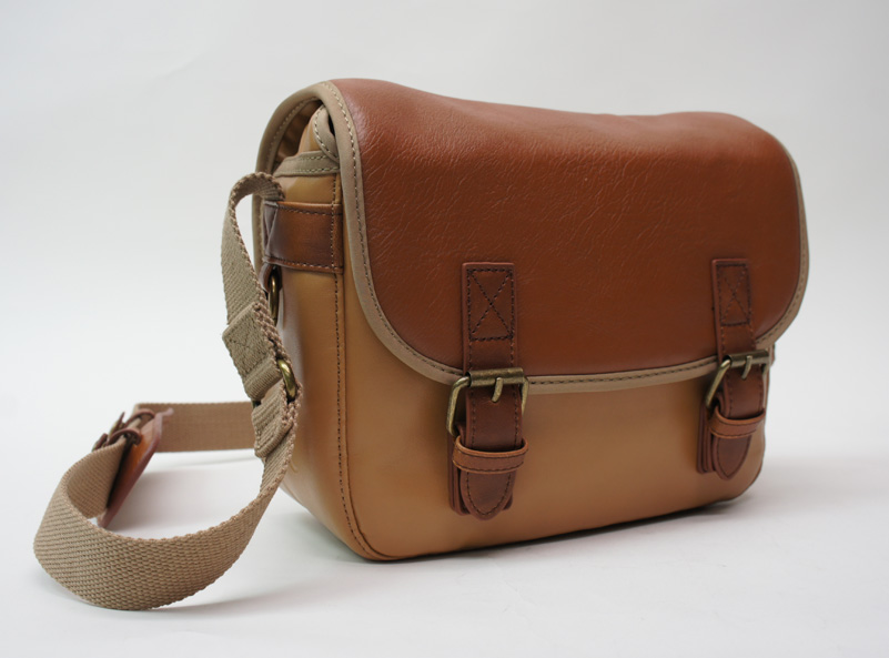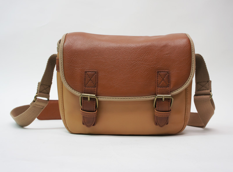 以復古式書包造型概念結合相機包袋,跳脫以往相機包單調的外觀,內部以天鵝絨及厚質泡棉,保留相機包的防護功能性,是一款特別的相機包。