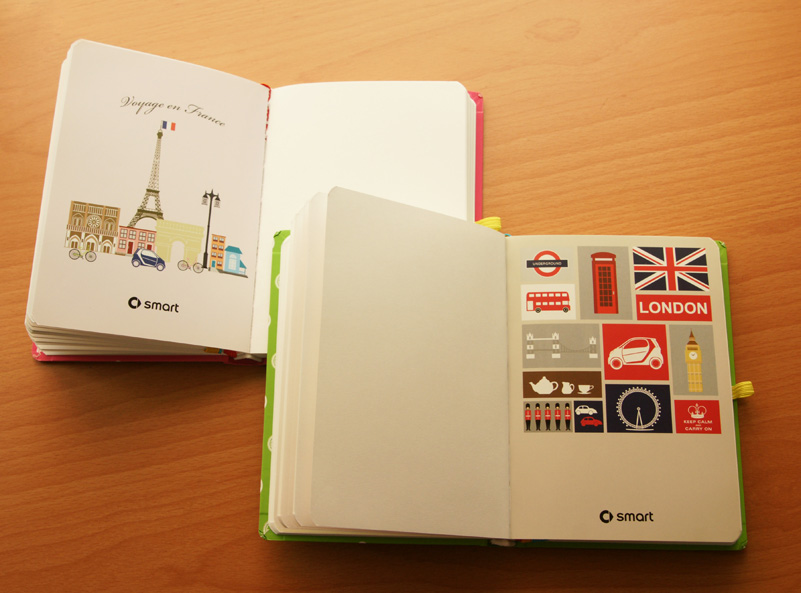 以經典車款遨遊世界為概念,呈現多樣的異國風情,搭配上封面鮮艷色系,突顯出筆記本的獨特面貌。