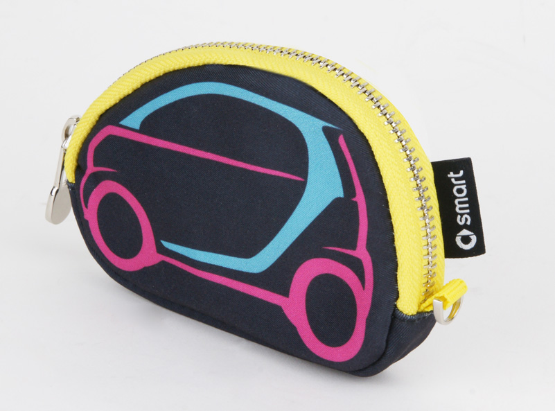 以車款造型做為零錢包外觀設計,特以螢光系色彩搭上車款圖紋,增添整體零錢包繽紛豐富的色彩。