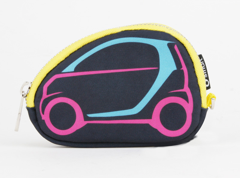 The coin pouch is designed in the shape of car and decorated with fluorescent patterns, featuring a lively style.