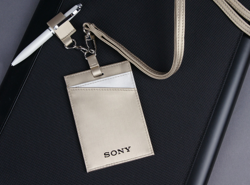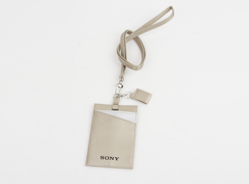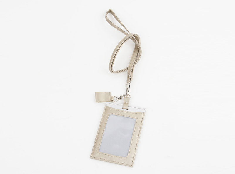 This card badge is made of metal style leather in two colors, creating a unique and shining look.